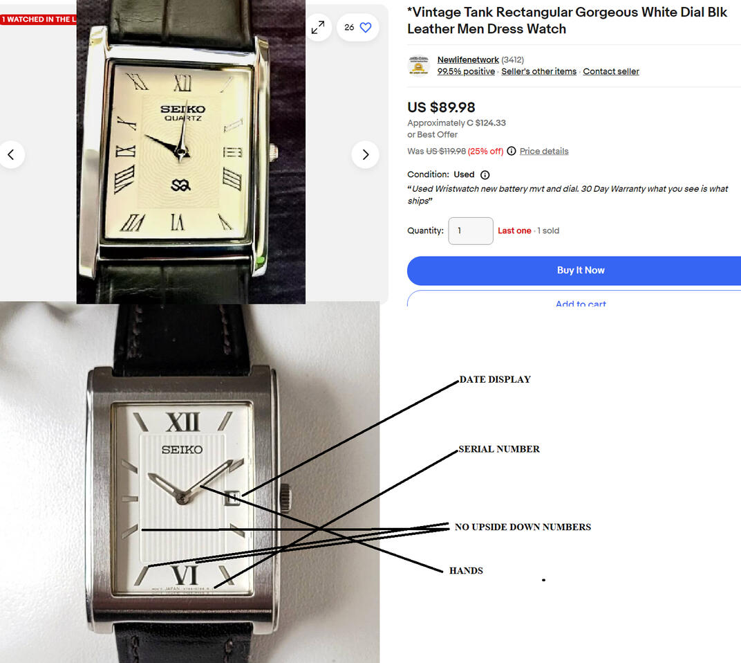 This one is relentlessly opening under dozens of names, all selling the exact same watch which doesn't even exist as an original. It's not even a good counerfeit. It's just a mass produced. Seiko only has one model similar-see below for the original. This one earned over $170,000 US in his first year under this fake name. Etsy earned a whopping $42,500 in illegal fees from this 1 account.