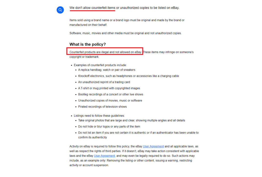 EBAY policy on counterfeit items: