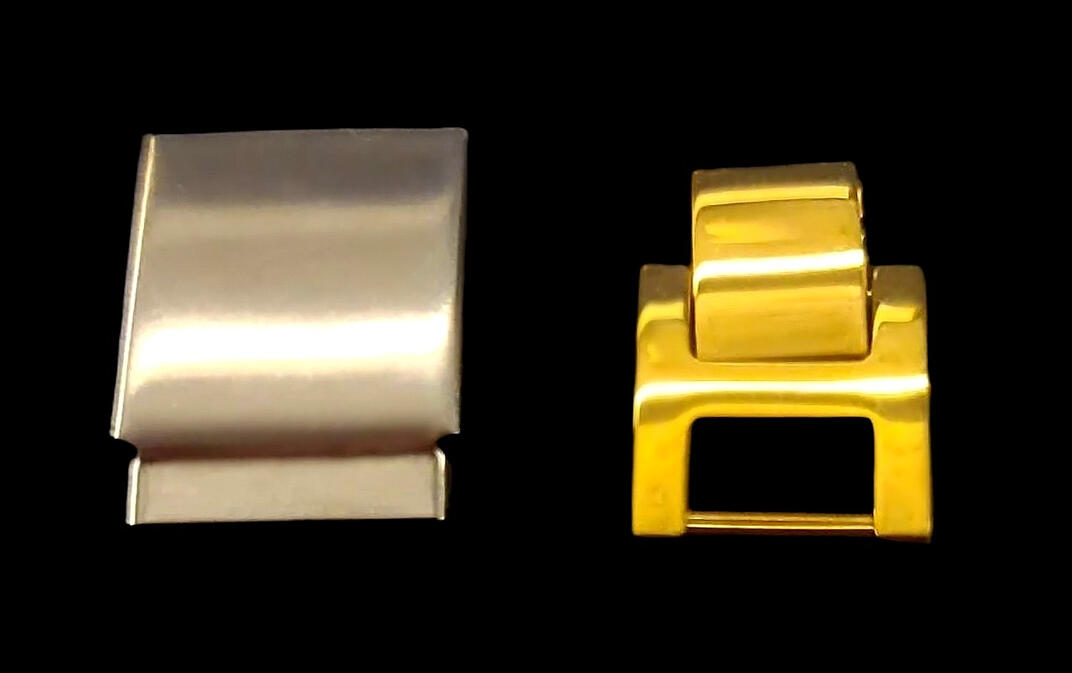 Metal band too short? Band extenders are the solution for most metal bands. The 2 most popular types of extenders are the bracelet extender and the foldover clasp as seen here. Drew Jewellers carries many types of extenders.