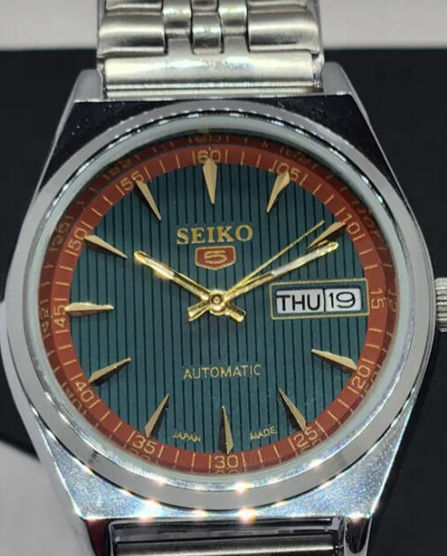 Fake Seiko 5 with printed on logo, glued on markers & no serial number.